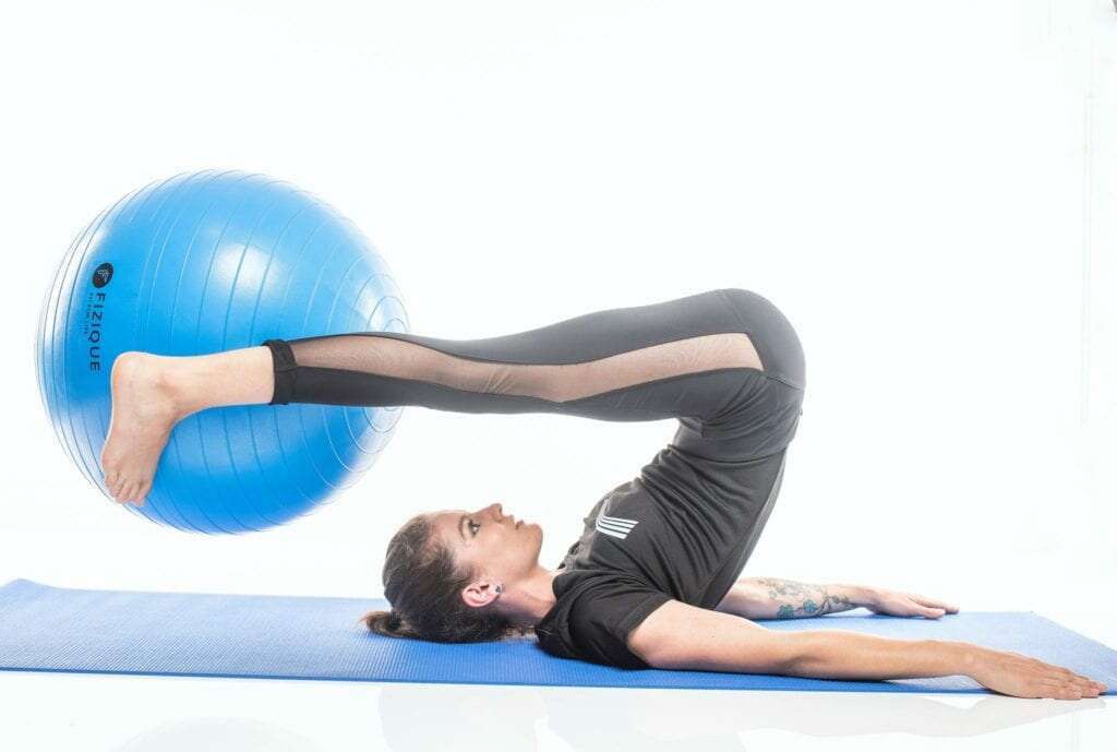Sit on the mat and have your legs stretched out in front of you with your hands behind you. Your fingers should be pointed to your legs. Push your hips up until your body is at an angle to the floor.